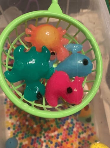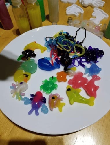 Acest kit este foarte bine făcut. Îmi place că are propriul recipient de depozitare. Ne-am jucat ore în șir. Bunul simț îți spune că, dacă vrei ca culorile să dureze, nu supraîncărca matrițele de fiecare dată. Încă nu am rămas fără nicio culoare! Lăsăm squishie-urile în soluție peste noapte pentru a ne asigura că interiorul se gelifică corespunzător. Este nevoie de o perioadă de timp pentru a se putea strânge împreună și a se juca cu ele, ceea ce poate fi dificil de explicat copiilor mai mici. Ouăle de dinozaur și mărgelele de apă sunt un bonus suplimentar. Foarte recomandat! Distracție pentru toate vârstele.